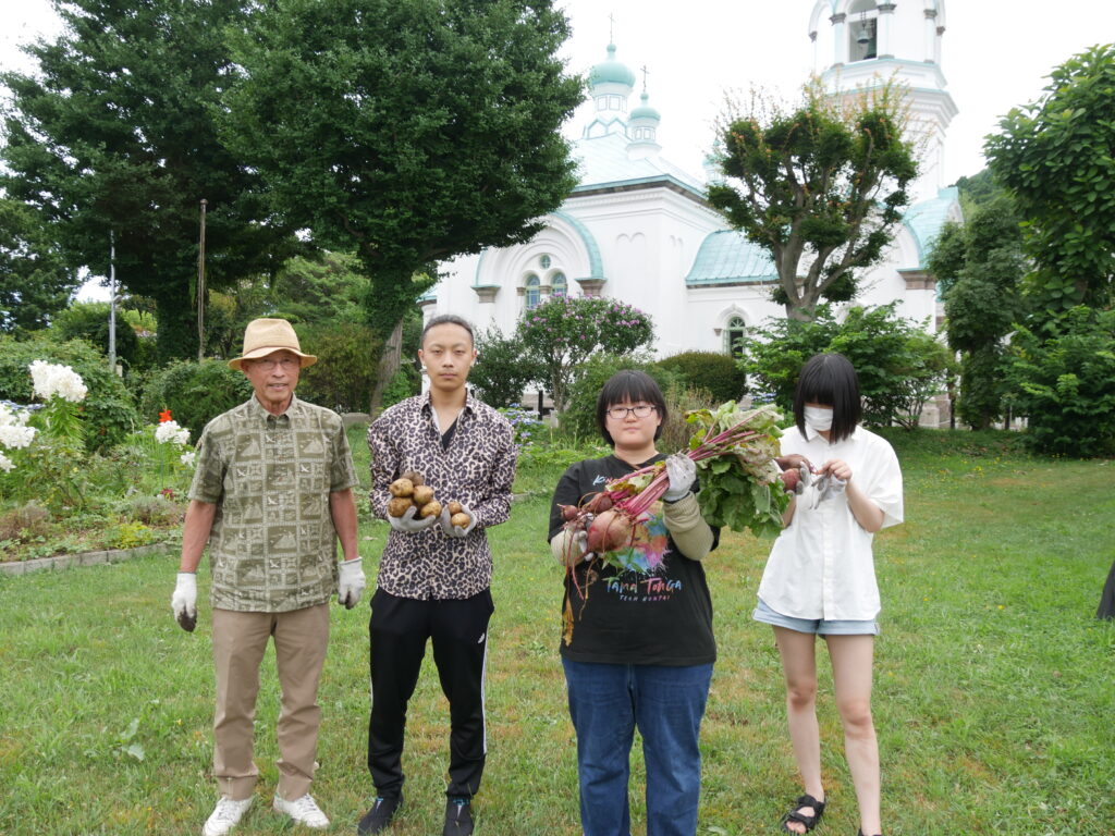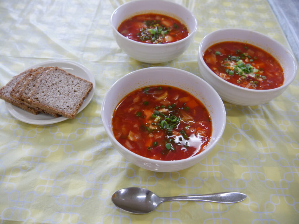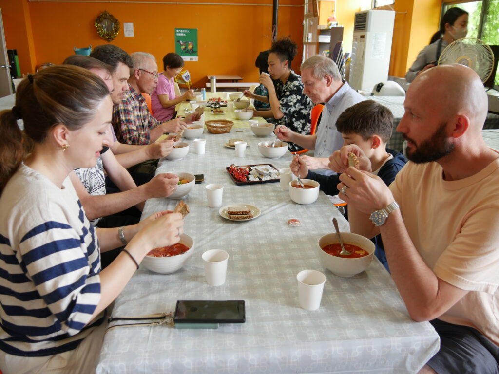 今年も農業プロジェクト・アグリ八幡坂が育てたビーツとジャガイモを使い、学生がボルシチを作り、教職員にふるまいました。飛び入りのロシア人旅行者もあって、楽しい昼食会となりました。